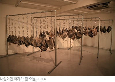 부제: 내일이면 어제가 될 오늘. 시간의 덧없음과 현대 물질 만능주의에 관해 표현한 설치작업.
