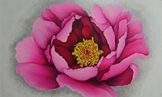 모란꽃이 피고 지는 과정을 소재로 복을 염원하는 마음을 염색물감과 아크릴물감, 보석을 부착하여 화려하게 표현한 회화 작업.