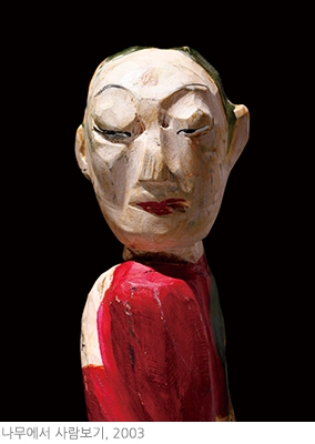 보통사람들의 존재에 집중하고 그 삶의 모습을 나무에 대입해 나무의 자연스러움을 살려서 표현한 조각 작업.