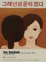 유한숙 작가는 우리에게 익숙한 포스터를 닮은 작품들을 제작한다. 어릴 적 누구나 한번쯤은 그려보았던, 5색 이하를 사용해 명료한 인상을 주어야 한다고 배웠고 글씨를 반듯하게 칠하느라 늘 조심스러웠던 포스터. 그 반가움 때문인지 포스터도 작품이 된다는 게 신기해서인지 유한숙의 그림은 흥미롭다. 작가가 대학원을 진학하면서부터 그리기 시작한 이 작품들은 ‘말’에서 시작되었다. 작가는 사람들과 대화를 나누다가 들었던 또는 미처 내뱉지 못해서 자꾸 마음 속을 맴 도는 말을 적어 리스트를 만들고, 그 중에 마음에 드는 문구를 골라 작품의 제목으로 삼았다. 그리고는 스스로 안 된다고 정해놓았던 것들을 과감하게 시도했다. 캔버스를 일기장 삼아 글씨를 쓰고 만화를 그렸다.
