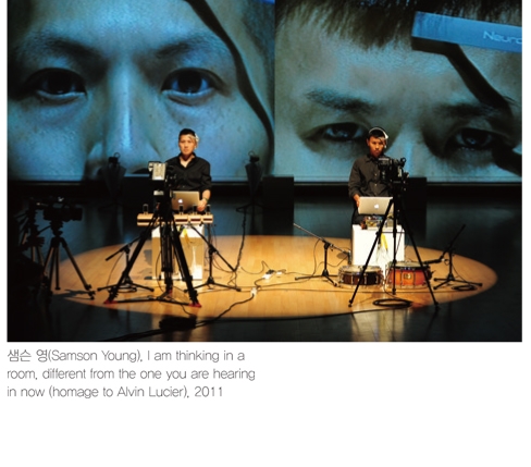 매체로서 존재하는 뇌 : ‘인간의 뇌’가 발휘하는 비물질적 작용인 ‘파동’ 자체를 표현의 수단으로서 창작의 행위에 흡수하여 수용자의 내면적 상태를 현시한다.