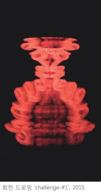 - <Text Jar Series ‘challenge #1’>은 ‘도전’이라는 단어를 일러스트 프로그램으로 회전시키고 일정 부분을 변형하여 석고 캐스팅을 통해 도자기로 만들어낸 작품이다. 하나의 형태처럼 보이는 도자기는 사실 몇 개의 도자기가 쌓여있는 분리가 가능한 그릇으로, 식기로 사용할 수 있다.