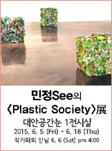 Plastic을 주제로 한 나의 작업은 우리의 환경을 그리고, 가치관을 묻는 작업이다.플라스틱은 쉽게 쓰고 버리는 우리 문화를 대변할 수 있는 상징성 있는 소재이자 의미를가지고 있다. 플라스틱은 사전적으로 가짜의, 인공물의, 싸구려의, 플라스틱 합성물, 신용카드란 뜻이다. 하지만 60년대까지만 해도 플라스틱은 사람이 만든 최고의 인공물이란 극찬을 받았다. 이런 플라스틱이 싸구려란뜻을 가지고 쓰레기통을 뒹군다. 나는 쓰레기통이 세상을 보여준다고 믿는다. 플라스틱 과자 봉지, 포장 컨테이너 박스, 플라스틱 소품들이 인스턴트 도시의 가볍고, 얇고, 부풀려지고, 무색, 무취한 쉽게 쓰고, 버리는 플라스틱 문화를 보여준다. | ||