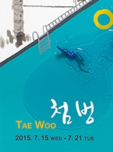 수영장이라는 공간을 통해 화폭에 즐거움을 담고자 한 작가의 의도는 두 번째 작품인 ‘Pool_lay 첨벙’에서 좀 더 명확하게 드러난다. 첫 번째 작품(Pool_lay)에서 공간의 전체적 의미를 담아 시야를 넓게 했다면, 두 번째 작품에서는 시야를 좁혀 자연과 어우러진 수영장에서 사람들이 헤엄을 치며 즐기는 모습을 더욱 부각시켰다. 작가는 물속에 잠길 때 나는 소리인 ‘첨벙’이라는 청각적 단어를 통해 수영장이라는 공간 속에서 유(遊)를 창출하고, 현시대의 와유(臥遊; 누워서 유람한다)의 정신을 재해석하여 표현하고 있다. 또한 조형물을 통해 입체적인 시각적 효과를 더했다.