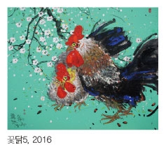정유년 첫 전시 복닥은 벽사와 길상을 상징하는 닭의 힘찬 모습을 묘사한 한상윤 작가의 신작 20여점을 전시한다.