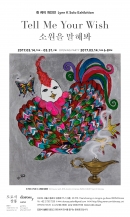2014년부터 꾸준히 <자아를 찾아가는 계단>, <눈 안의 눈>, <Hug yourself> 등의 따뜻하고 의미 심장한 주제로 작업을 보여주었던 린 케이. 이번 전시에서 작가는 <소원을 말해봐 Tell me your wish>라는 타이틀로 우리에게 새로운 이야기를 건낸다. 린 케이는 작업을 통해 일상에 찌들어 있지만 실은 앙큼한 나만의 꿈을 품고 살아가고 있는 ‘사랑스런 우리들의 속내’를 표현하고 싶다고 한다. 현실과 꿈은 가까우면서도 멀고, 멀면서도 가깝다. 우리가 꿈을 꾸는 것과 실제로 마주하는 현실은 다르기도 하고 또 같기도 하다. 작가는 이런 이야기를 허심탄회하고 사랑스럽게 그림으로 풀어낸다. 몇 년 전부터 매년 그 해의 동물을 모티브로 그려 온 작가는 그렇게 2017년 정유년 닭의 해를 맞아 결코 예쁘게 그려낼 수 없을 것 같았던 닭을 주제로 또 하나의 사랑스런 테마를 탄생시켰다. 애정어린 선한 눈매로 우리를, 혹은 서로를 바라보는 린케이의 사랑스러운 닭들은 우리에게 너도 어서 이렇게 예쁜 사랑을 하라고(사랑한다면 그들처럼), 하고 싶은 것이 있으면 다 말하라고(소원을 말해봐, 다줄꺼야, 세상의 중심에서 아침을 외치다), 기도하라고(나의 밤기도), 소원하라, 그리고 그러면 그것은 이루어 질 것(소원성취, 바람이 되다)이라고 소곤거린다. 그리고 그들의 곁에는 그 소원을 이루어 줄 요정 지니를 품고 있는 알라딘의 램프가 함께 한다. 반짝이는 그림을 마주하는 것만으로 그냥 바라는 바가 모두 다 이루어 질 것만 같다.