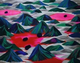 어린 시절 수영을 배울 때 겪은일로 물에 대한 트라우마가 생긴 나는 수영을 잘 하지 못한다. 물속에 쑥 빨려 들어가 숨이 막혀 서서히가라앉는 모습이 떠올라 견딜 수가 없다. 그래서 더욱 물을 그리고 싶은 지도 모르겠다. 그림 속의 물은 나의 아픈 곳을 씻어 내리고, 산을 따라 흘러 계곡이되고 강이 되어, 나를 새로운 세계로 흘려 보낸다. 산은항상 그 자리에 서서 지켜보고 있다. 마치 변하지 않는 ‘진심’과 같다. 집은 ‘나의모습’이기도 하다. 가시나무가 자라거나 창문 하나 없이 깜깜하기도하고, 입구에 서서 밖을 향해 뛰어나갈까 망설이기도 한다.
