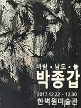 가득하다. 화면을 위한 인위적 수사(修辭)는 없다. <변성變成_움직여서 이룸> 무겁고 깊은 그것. 먹이 물을 만나 저절로 부풀고 풍부하게 화면을 덮는다. 박종갑의 신작 중 유독 눈에 들어오는 검은 화면의 그것이다. 먹물(水)과 먹(墨)의 조화로 표현되는 수묵은 분명 회화재료다. 그러나 단순한 재료의 명칭만으로 국한되진 않는다. 수묵이란 단어 안에는 작가의 사유와 개념을 담아내는 적절한 방식과 과정의 필연이 내포되어 있다. 검다, 어둡다, 밤 등의 의미인 검을 흑(黑)과 땅과 흙을 뜻하는 흙 토(土)가 만난 단어로 풀이한 『설문(說文)』에서 묵은 먹(畵墨)이라고 말한다. 밤은 아침을, 어두움은 밝음을 그 다음 수순으로 삼고 흙과 땅은 생명의 잉태와 생성을 내재한다. 바람과 돌과 남도와 화가가 각각의 다른 개체와 대상이 아닌 서로 얽히고 이어진 유기적 관계의 태생적 의미와 환원이며, 조형적 순환 운동을 회화적 발생이다. 순환하고 윤회하는 유기적 관계의 사람과 자연 그리고 예술인 셈이다. 물과 먹, 그것으로 충분하다. 태양아래 사물을 식별하기 위한 일차적 색채 보다 더 내밀하고 근원적이며 자유롭고 풍부하다. 박종갑이 드러낸 수묵은 멈춘 것이 아닌 살아있는 생물인 수묵이다.