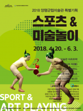 양평군립미술관은 오는 4월 20일부터 6월 3일까지 현대미술작가 35인의 작품 70여점을 소개하는『스포츠와 미술놀이』展을 개최한다. 제 64회 경기도체육대회가 양평군에서 개최됨에 따라 스포츠와 문화를 함축하여 보여주는 전시이다. 양평군립미술관은 국내 최고의 현대미술전문미술관을 지향하면서 2011년 12월에 개관,『마법의 나라, 양평』展을 시작으로, 연간 8개의 크고 작은 기획전시를 유치하여 국내외 현대미술을 맨 처음 만나는 미술관으로 정착하여 왔으며 이로 인하여 국내외 미술계로부터 큰 성과를 나타내어 양평의 문화브랜드이자 랜드 마크가 되고 있다. 이러한 정황 속에서 2018년도 8개의 기획전시 중 첫 기획전시는 『양평에 온 라틴미술』展과 경기 동북 4개 도시의 현대미술작가를 기획하여 지역미술계는 물론이고 많은 관객들로부터 호평을 받아오고 있다.