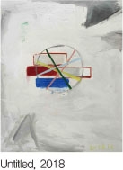 이번에 보여주는 샌정의 작품들에는 3년 전 ‘study painting’에서 전시했던 작품들에 조심스레 자리했던 인물이나 자연물을 연상시키는 형태들이 사라지고, 무채색 톤을 배경으로 여러 색채의 추상형태들이 화면에 나타난다. 작가는 서양의 오랜 미술사조와 만나는 동양 수묵화의 정신적 기운 아래, 여기에서 이어지는 이야기를 화면 안에 담아내려 한다. 그는 동양적 감수성에 바탕을 두고 동양과 서양 회화의 접점을 모색한다. 어찌 보면 산수 풍경화 같은 배경 위에 대조적으로 나타나는 기하학적인 형태들은 우주의 행성들처럼 허공에 떠있다. 한국의 오방색을 연상시키는 빨강, 파랑, 노랑, 초록의 기본 색을, 점과 선, 원과 사각형 등의 기본 형태를 반복하며 ‘회화란 무엇인가?’ 그 의미를 찾고 있는 듯하다. 어디로 향해 가는지 알 수 없는 그의 작품 속에서 감상자의 시선은 작가의 붓 놀림을 따라 화면 이 곳 저 곳을 떠돌게 된다. 제한된 환경 속에서 작가의 관조적 태도가 회화로 나타나고, 내면의 혼돈과 고립은 오랜 시간 숙고한 후에 화면위로 던져져 모호한 붓질로 드러난다. 샌정은 페인팅 자체를 숙제로 안고 현대적 의미에서 ‘회화 미학’의 해석과 재해석에 작품 제작의 가치를 둔다.