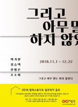 OCI미술관(관장 이지현)은 2018년을 마무리하며 기획전 <그리고 아무 말도 하지 않았다> (2018.11.1~12.22, OCI미술관 1, 2, 3층)를 개최한다. 전혜린의 수필집과 독일의 문인 하인리히 뵐(Heinrich Böll)의 동명 소설에서 전시 제목을 빌어온 이번 전시에는 박기원, 장승택, 전명은, 조소희 4명의 작가가 참여하여 ‘침묵’을 주제로 작품 세계를 펼쳐낸다.