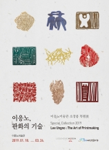 이응노라는 낯선 이름을 1960년대 파리 화단에 성공적으로 알린 문자추상은 한자에서 발견한 패턴의 가능성을 탐구한 초기 문자추상과 문자 구조에 주목하고 이를 건축적으로 해체 조합한 후기 문자추상으로 구분된다. 또한 이번 소장품 전은 군상 작품을 통해 군상 연작의 양식적 근원이 서체에 있음을 보여주려 했다. 그림 속 사람 형태는 글씨를 쓰는 붓놀림에서 파생된 이미지로 단순히 군상이 정치•사회적 의미 넘어 서체추상 양식의 완성, 절정에 오른 서체적 붓놀림의 산물임을 알 수 있다. 1960년대 후반부터 80년대까지 꾸준히 제작된 프린트는 마치 낙관, 전각의 기술을 연상시킨다. 이응노의 문자는 추상을 따르고 있지만 한국의 인장 전통에도 뿌리를 두고 있다. 특히 전서체와 같은 서체를 문양처럼 활용한 추상, 세밀한 필선을 장식적으로 구사한 문양 등은 작가의 문자추상이 전각의 전통과 연관성이 있다는 점을 추측케 한다. 그는 전각의 서체를 1960년대 종이 콜라주나 중봉을 사용한 회화 작품 속에서 반복적으로 사용하기도 했다. 이런 점에서 그의 회화와 프린트는 양식적 연속성을 갖는다.