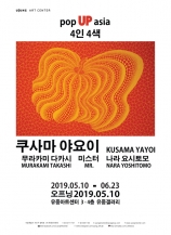 서울 서초구 방배동 유중아트센터(운영위원회 이사장 정승우)는 5월10일부터 6월23일까지 쿠사마 야요이, 무라카미 다카시, 나라 요시토모, 미스터의 작품을 한자리에서 선보이는 <POP UP ASIA-4인4색展>을 3층, 4층 전시장에서 진행한다.