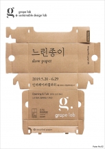 특히 재생지와 비목재지는 그레이프랩이 사용하는 가장 매력적인 지속가능한 디자인 소재입니다.그레이프랩은 친환경 재생지, 오리가미 방식을 활용한 휴대용 거치대(지스탠드), 플래너(지플래너) 등의 제품을 선보이며 종이의 쓰임을 최대한 연장하고, 발달장애 작가들과의 협업을 통해 상생을 추구합니다. <느린 종이>는 재생지와 적정기술의 컬래버레이션, 재생지와 발달장애 청년 작가들과의 컬래버레이션을 통해 그레이프랩이 추구해온 환경적, 사회적 가치를 보여주는 전시입니다.