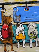 박정일 작가 역시 개인의 고독을 표현하는 데 좀 더 재치 있는 방법을 택했다. 가족으로서의 반려동물을 묘사하는데 일상 속 우리들의 모습을 이입시켰다. 지하철이나 버스 안에서 마스크를 쓰고 출퇴근하는 모습이나 여행을 떠나는 모습에서 삶의 교차로에서 늘 고민하는 인간의 희노애락을 담았다. 박정일 작가는 작가노트에서 “매일 되풀이 되는 캔버스를 보면, 이것이 나를 기쁘게도 고통스럽지도 하지만 그저 순환의 연속이라고 생각한다.”라고 밝혔다. 일생의 정점인 화려한 순간이나 절망의 순간을 그리기보다 둥글게 흘러가는 우리네 삶에 대한 긍정의 태도로 작업에 임하고 있는 것이다. 전지전능한 신적 존재로서의 인간이 동물을 대하는 갑을 관계가 아니라, 보살피고 보살핌 받는 애정 어린 상호 보완적 관계로서의 ‘Family’라는 울타리는 그렇게 희망적이다.
