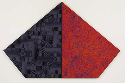 ‘천상 언어’는 내가 돈황에서 불교 도상을 그리며 집중했던 단어다. 내가 그리고 있는 모든 종교적 도상들이 신의 언어를 전하고 있다는 생각에서 출발했다. 누군가 예술가는 무당과 지극히 닮아 있다고 했다. 옳은 말이다. 무당이 신의 말을 전하듯이 나는 꽃으로 나무로 또는 바람으로 들었던 신의 말을 그림이라는 도구로 풀어 놓는다. 해석은 관자의 몫이다. 누구는 내 그림에서 환희를 볼 것이고 누구는 슬픔을 들을 것이다. 나는 내가 문득문득 들은 것을 내가 해석한 언어로 옮길 뿐이다. 특정적인 문자를 다시 분해하고 재배합하여 특정적이지 않은 무늬를 만들어 땅을 삼고, 형태를 깨고 분해하여 재조합을 통해 새로운 형상을 만들거나 부정형의 도형을 무심하게 그은 형상으로 하늘을 삼는다. 땅과 하늘은 서로 상생하고 호흡하며 조형으로 존재한다.