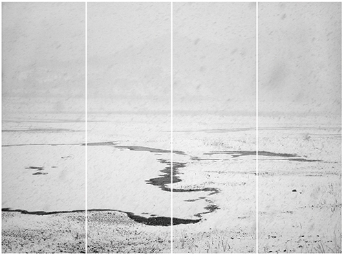 작가는 담양의 소쇄원에 폭설로 잠시 갇혔을 때, 온 세상이 새하얗게 덮인 대지 속에서 한옥이 가진 선과 구조를 발견했다. 눈덮인 겨울의 풍경은 백지처럼 하얀 여백을 연상시키고 눈에 둘러싸인 한옥은 소박한 겸허의 미학을 보여준다. 시간이묻어 있는 벽들은 처음 그 집들을 지을 때 사용된 나무 선이 보이는 벽이다. 그 벽을 이루는 기둥들이만들어내는 선은 정확한 직선이 아니라, 우연히 자연스레 존재한 듯한 모습을 취한다.