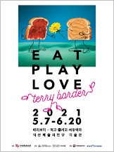 테리 보더(Terry Border, 미국, 1965~ )는 디지털미디어시대 소통방식 중 하나로, 시각적 이미지를 사용해 메시지를 전달하는 커뮤니케이션 방법인 ‘비주얼 스토리텔링’을 능숙하게 구사한다. 자신의 경험담, 사물과 관련된 다양한 이야기를 한 편의 상황극처럼 연출해 비주얼 스토리텔링으로 전달하는데 그치지 않고 블랙유머를 사용해 감상자의 의표를 찌르며 블랙유머를 삶의 부조리를 고발하거나 인간 존재에 관한 근본적인 질문을 던지는 효과적인 장치로 활용한다. 세상에서 가장 웃기는 동시에 가장 시니컬한 작가로 유명한 미국 소설가 커트 보네거트(Kurt Vonnegut)는 블랙 유머를 “울 수 없으니까 웃기는 것”이라고 표현했다. 진지하고 무거운 주제를 유쾌하고 재치 있게 비틀어 비극성을 더욱 강조하는 테리보더의 블랙유머는 감상자에게 삶과 죽음에 대한 지혜와 통찰력을 얻을 수 있는 기회를 제공한다. 또한, 이번 전시는 테리 보더의 대표적인 사진 작품을 통해 일상에서 만나는 다양한 소재와 구부린 철사로 팔다리를 붙여 우리의 삶과 세상의 이야기를 위트와 감동으로 전달하며 애니메이션과 메이킹 영상까지, 테리 보더의 예술세계를 다양하게 감상할 수 있도록 구성하였다. 작가의 작품을 통해 우리의 삶의 이야기를 사물에 빗대어 보면서, 관객은 먹고(eat), 즐기고(play), 사랑하는(love) 우리의 일상을 발견하게 될 것이다.