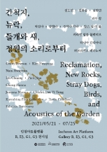 《간척지, 뉴락, 들개와 새, 정원의 소리로부터》 전시는 도시 인천을 둘러싼 개발과 생태환경, 인간으로 인해 야기된 환경변화 속에서 발생된 들개와 새, 이러한 비인간동물과의 공존에 대한 문제들을 살피며 인천의 현재 환경으로부터 수집된 단어들을 통해 만들어졌다. 인천은 역동적인 산업 생산성을 가진 큰 항구 도시이자 개항의 근대사를 지닌 다채로운 도시이지만, 동시에 갯벌 생태를 잠식하는 간척지의 도시이며, 새로운 해양 생태의 일원이 되고 있는 플라스틱 암석, 늘어난 들개들의 포획과 계양산 개농장 등을 둘러싼 동물권 이슈들, 도시생태와 녹지 문제 등, 다양한 환경 이슈들을 끌어안고 있는 곳이기도 하다. 사실 이러한 지점들은 오늘날 이 도시에만 국한되는 것은 아니며, 이 전시 제목의 말들과 관계되는 맥락들은 현재 인류 모두의 삶에 보편적으로 깊이 영향을 미치는 것이기도 하다.