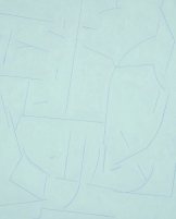 이번 전시는 작가가색에 대해 보다 전향적으로 접근하고 있음이 우선적으로 눈에 띈다. 기존 작품에서 보이던 밝은 무채색이중첩된 화면에 직교가 지배하는 선과 도형의 정돈된 형태에서, 파스텔톤 바탕에 보다 자유분방한 배열의 긴 색 선들이 화면을 다중 분할하고 있음이 감지된다. 흰 배경에 검은 선과 도형이 각도와 방향성의 콤포지션으로만 무브먼트를 만들고 바실리 칸딘스키의 주창처럼 "발색의 환영"을 끌어냈다면, 신작에서의 색 선의 등장은 화면에 온도감을 부여하고 원근의 착시를 불러오며, 선에 집중되던 시선에서 분할된 면과 덩어리의 고저와 두께를 인지하게 이끈다."선이 그어지는 행위로 탄생하는 면"이라는 종속 관계는 이내 모호해지고, 색의 존재는 분할된 면 간의 계층 구조(hierarchy)를 조장한다.