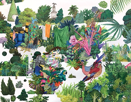 본인의 삶의 터전인 파주와 그 파주에서 만나는 풍경들에서 시작하여 온몸으로 감각하여 인지한 풍경을 편집하고 키워서 '자라나는 풍경'으르 그려냈던 조세랑은, 이번에는 그렇게 조금 다른 이야기에서 작업을 시작합니다. 길가다 만난, 내 앞을 가로 막고 있어 발로 차면 찰수록 커져버린 정체모를 동물이, 사실은 내가 혼자 만들어 낸 의심과 불안이 커지고 커져서 내 앞을 가로막아 버린 것이더라는 이야기를 읽으며, '의심과 불안이 가득한 경계의 끝'은 어떤 색일까 생각해 보았다고 해요. 그렇게 우리가 키우고 또 키우는 의심과 불안, 경계의 풍경과 색을 그만의 방식으로 표현하면서, 팬데믹이라는 우리 중 어느 누구도 겪어 보지 못한 어려운 시기를 헤쳐나가는 우리에 대하여 생각하고 고민합니다. 조세랑은 <차면 찰수록 커지는 동물 More Kicked, Bigger It Gets> 시리즈로 표현하는 과정에서 그런 의심과 불안, 경계에 대하여 스스로 깨닫고, 해소하고 또 위로받게 됩니다. 더불어 그의 작업은 우리 또한 그렇게 의심과 불안 속에 경계하며 힘들어 하지 말고 스스로 위로 받고 편안해 질 수 있지 않을까 조용히 이야기 하네요. 여전히 그의 풍경은 4년 전 <파주 Faju (2017)> 때처럼 다양한 풍경과 이야기들로 자라나고 확장되어 우리의 눈과 마음을 풍성하게 해줍니다. 작가가 처음 시도해보는 콜라주 기법은 그의 화면에 깊이를 더해주어 전과는 또 다른 보는 재미를 선사합니다.