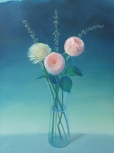 테이블 위에 두고 이렇게 저렇게 볼 수 있는 절화(折花)는 흥미롭다. 절화라는 꽃의 상태가 주는 서늘한 감각이 자꾸만 바라보게 한다. 일반적으로 자연의 경이로움은 멀리서 조망하는 풍광을 지칭하지만 절화는 테이블 위의 ‘가까운 경이驚異’라는 생각이 든다. 아침 저녁으로 달라지는 꽃의 모양과 색을 보며 숭고를 느끼는데 이는 그림의 배경으로 산, 호수, 바다 같은 모호하고 거대한 자연을 커튼처럼 드리우도록 이끈다.