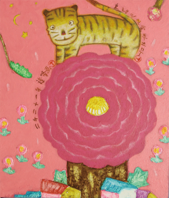 이번 전시는 어려운 시국에 태평성대를 누리길 바라는 마음으로 꽃에 빠진 행복한 호랭이 작품을 선보인다 그가 묘사하는 호랑이는 포효하는 용맹스러운 모습이 아니라 상징적이고 친근감있는 이미지를 담고 있다. 더불어 모란이 가세함으로써 상서로운 기운이 집안에 가득하기를 염원하는 뜻을 담아 세화로서의 덕목을 갖춘 그의 그림은 그 화목의 조합만으로도 좋은 일이 생길 것만 같은 기대감을 준다.