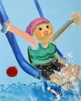 <일몰>, < Night pool> 등의 작품에서는 방과 후에 아이와 함께 바닷가에서 수영하는 즐거움을 표현하고 있다.