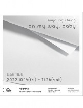 이번 전시명 “on my way, baby(가는 길이야, 내 사랑)”는 기다리는 연인이나 아이들을 위한 속삭임처럼 들린다. 그리고는 “조금만 기다려요! 물리적 거리와 여러 사회적 상황들을 헤치며 빛의 속도로 가는 중이니!”라고 말하는 듯하다. 이는 지극히 일상적인 말이다. ‘내’가 ‘베이비’에게 도달하기까지 마치 자석의 끌림처럼, 둘 사이를 방해하는 온갖 장애물들을 삭제하면서 현실적으로 최적의 방법(short-cut)을 찾는다. 심지어 우리는 더 빨리 가기 위해 날개를 달고 초자연적 괴력으로 시공간을 가로지르며 차원을 뛰어넘거나, 개인용 헬기로 가는 상상을 한다. 이 드라마 같은 순간에서, 관람자들은 부산한 움직임의 궤적과 변화무쌍의 흔적만으로 급하고 설레는 심적 상황을 짐작만 할 뿐이다. 물론 도착을 지연시키면서 이리저리 우회할지 모른다. 이번 전시는 나와 베이비와의 상호관계, 사건과 행위, 정서를 드러내는 공간 자체를 조각적 실천방식으로 대상화하는 실험이다. 정소영은 이러한 모든 것이 잠재된 공간에서 ‘베이비’에게 가고 있는 연속적인 행위를 개인적인 “솔직한 일기”로 시각언어화 한다.
