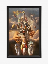 <신념의 탑>은 인간의 영역을 암시한다. 여기에서 숫자 2는 삶/죽음, 남자/여자, 음/양, 시작/끝 등 인간 세계의 대칭성을 상징한다. 화면의 모든 요소와 대상이 기념비적 탑을 중심으로 대칭적 구도를 이루며 자리한다. 작가는 인간의 ‘신념’이 현실화된 듯한 탑에 다양한 상징을 세심하게 삽입하여 묘사한다. 거대한 두 손이 두 마리의 호랑이를 컨트롤하고, 지혜의 대리물인 부엉이와 곰의 탈을 쓴 웅크린 인물이 탑의 중간 지대에 있다. 빨간 문과 파란 문, 문 위에 서 있는 의뭉스러운 두 인물, 탑을 감싼 두 무게추, ‘adoremus in aeternum(우리는 숭배할 것이다)’와 ‘ad vitam aeternam(영원한 삶을)’이라는 라틴어 문구가 새겨진 끈을 물고 비행하는 두 마리의 새, 인공 탑의 꼭대기에서 신념을 위해 목숨을 바치며 두 개의 깃발을 들고 뛰어내리는 인물, 중세 연금술에 등장하는 우로보로스를 은유하는 도마뱀 등이 화면을 가득 채운다. 저 멀리, 먹구름 사이로 성스러운 분위기의 빛이 쏟아져 내린다. 반면, 숫자 3은 삼위일체, 헤르메스 트리스메기스투스, 케르베로스 등 신의 영역을 의미하며, 그 세계는 <영원의 탑>에서 구체화된다. <신념의 탑>과 대구를 이루는 이 작품에는 인공의 탑과 대조되는 신성함이 느껴지는 자연의 오래된 나무, 그 나무 위를 걷는 요정, 봉을 들고 줄타기하는 세 인물과 세 개의 방울, 신의 세계를 관장하는 듯한 거대한 고양이 등 인간을 초월해 신의 영역에 가까워지는 아이콘들이 담겨있다.