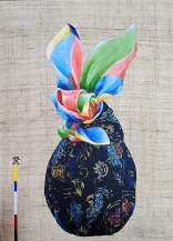 보자기는 福복을 싸둔다는 의미가 있어, 명절이나 특별한 날의 선물을 보자기에 싸거나 예단을 보자기에 싸서 보내는 이유이기도 하다. 혼례에 쓰이는 정현숙 작가는  예단보자기의 매력에 빠져 삼베에 아크릴 물감으로 작업을 한다.