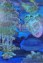 이번 전시에서는 Chat GPT의 도움으로 만들어낸 소설과 시, 이미지생성-인공지능을 통해 그린 그림들이 등장한다. 나의 드로잉과 인공지능의 아이디어가 섞여 있는 동화적 공간 안에서 전통-현재-미래를 연결하는 수묵화, 드로잉, 애니메이션을 선보인다.