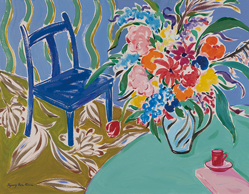 캔버스 위에 그려낸 작가의 실내풍경과 꽃다발은 역동적인 선들과 색들이 어우러져 생명력이 넘쳐난다. 꽃다발이 담긴 화병에는 작가의 언어가 담겨있다. 작가의 풍경 속에서 사물들은 꽃과 어우러지며 작가의 내면을 여실히 보여준다. 흐드러지게 피어난 꽃들은 색채 뿐만 아니라 향기를 얻게 되면서 생명력 넘치는 풍경을 만들어내는데, 각자가 지닌 아픔이 치유되기를 바라는 작가의 마음이 아름답고 행복한 풍경으로 승화되어 우리를 위로한다.
