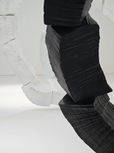 한지로 도배된 바닥 위로 흑백의 브론즈 조각이 서로 조응하듯 서있다. 신라호텔에 위치한 조현화랑_서울의 단아한 공간이 하나의 화폭이 되어 관람객을 작품 안으로 초대한다. 도심 속 지하 공간을 가득 채우는 비정형의 구도는 문명 아래 묻혀있던 고대의 유적지를 발견할 때 마주하게 되는 경외심과도 유사한 근원에 대한 원초적 기억을 불러일으킨다. 작품에 초대되어 어우러지는 관람객, 그리고 전시장 창문의 노란 구조물을 통해 작품에 은은하게 퍼지는 빛은 2차원과 3차원으로 구성된 흑백의 추상적 서체에 초월적 시간과 생명력을 더한다.