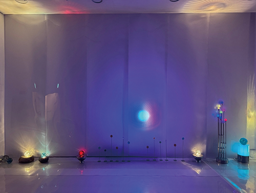 사람을 중시여기는 철학에, 시대를 앞서가는 과학을 더해, 가슴을 울리게하는 예술로 승화시킨 작가는 '빛의 어머니'로 불립니다. 그녀의 작업은 색과 빛의 파동이 그린 '색·빛 그림'입니다. 맑고 투명한 유리구슬이 색과 빛을 품고 흰색 입방체의 공간을 채운 다채로운 빛의 파동이 관객들로 하여금 많은 상상을 하도록 하고, 또한 감동과 영감을 받도록 해줍니다.