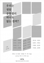 을지로 143에 위치한 스페이스유닛4(SPACEUNIT4)에서 2024년 연말 기획전 《우리는 정말 공통점이 하나도 없는 걸까?》가 12월 6일부터 12월 20일까지 열린다. 스페이스유닛4는 작가와 평론가가 함께 운영하는 예술실험공간으로 폭넓은 예술적, 사회적 의제를 다루는 예술가들의 창작활동을 지원한다.