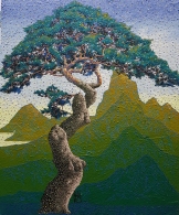 하판덕 선생님의 작품은 화폭 전면에 작은 점들을 반복적으로 그리며, 이 점들은 개별 입자가 아닌 관계성을 가진 존재로 묘사된다. 소나무를 그리지만, 이는 단순한 자연의 표현이 아닌, '생의 가치란 무엇인가'를 찾는 여정의 일환이다. 선생님의 고향 의령에는 600년 된 소나무가 있어, 그 아우라는 작품에 큰 영향을 미친다. 하판덕 선생님의 작업 세계는 불변하는 가치를 탐구하는 이미지를 담고 있으며 작품은 소나무와 뒷배경의 강렬한 색감과 조형미를 통해, 우리에게 인간 존재의 본질을 묻는다.