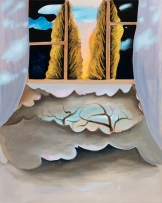 최근 이유진 작가의 작품에는 깊이감이 더욱 뚜렷하게 드러난다. 「Whispering to the Clouds」(2024) 과 「Purple Curtain」(2024)에서 볼 수 있듯이 직선 형태의 창문은 작품의 구조적 요소를 더해 공간을 분리하는 역할을 하지만, 창문 아래로 내려갈수록 여전히 모호한 분위기가 남아있다. 그녀는 작업의 일부분이 “무거워졌다” 라고 설명한다. 이는 말 그대로 종이 표면 위에 더 많은 물감이 쌓였다는 의미이기도 하면서, 이유진 작가가 보다 명확한 공간을 형성하기 위한 시도이자, 가라앉을수록 더 깊이 있는 공간이 생성되는 결과이기도 하다.