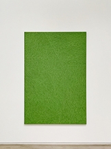 ▶ 박기원은 다양한 재료를 실험하며 공간과 호흡하는 새로운 인식의 설치작품들을 만들어왔다. 작가의 일상을 들여다보면 월요일에서 금요일까지 부천 작업실에서 회화작업을 하거나 설치작업에 관한 스케치를 하고, 주말에는 인천 해안동 거리의 ‘차 스튜디오’에서 시간을 보낸다. 차(茶)를 팔던 오래된 건물을 직접 꾸민 전시공간이다. 빈 벽이나 텅 빈 공간 등에서 영감 받는 작가는 그곳에서 한적한 시간을 갖는다. 장소가 주는 고유한 분위기를 포착하여 빛, 색 등 비물질적 재료로 공간 본연의 특질을 살려내는 박기원은 캔버스 작업으로만 이번 전시를 구성했다. ‘넓이’ 시리즈 회화는 공간 속의 특정한 장소적 상황을 크게 몇 개의 면으로 나누고, 각 면을 서로 다른 방향으로 선을 중첩하여 완성시킨 그림이다. 멀리서 보면 하나의 큰 색면이지만 가까이에서 보면 분리된 면과 켜켜이 쌓인 선을 볼 수 있다. 평면 속에서 장소의 움직임을 구현하기 위해 선을 중첩하는데, 그의 작업에서 주요한 개념인 ‘장소와 공간성’에 대한 관심이 평면화된 것이라 할 수 있다. 캔버스에 무수히 그어진 선들은 기하학적 색면 추상처럼 보여진다. 같은 선상에서 오일스틱으로 작업한 회화는 ‘자연 속의 사계’를 연상하며 블루, 그린, 브라운 계열로 색의 흐름이 나타나는데, 각각의 색은 강렬하지만 매우 자연스럽게 연결된다.
