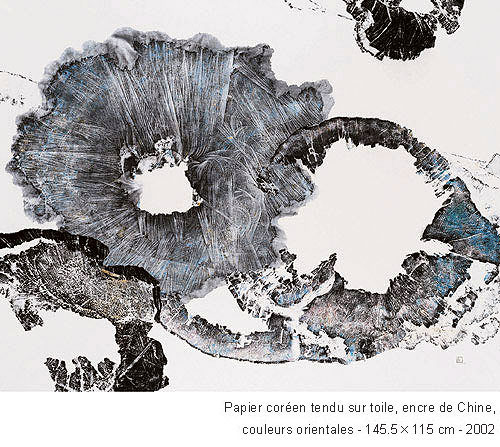 그의 화면을 편의적으로 분류하면 다음 네 가지 유형이 된다. 상상 상의 이미지와 여백이 만드는 풍경적인 화면, 목리문으로 화면 전체를 메운 전면화 화면, 단편적이긴 하나 구체적인 이미지가 등장하는 화면, 한지의 원료에서 추출하여 실이나 천의 질감들을 살린 새로운 구성의 꼴라쥬 등이 그것이다. 이같은 유형은 조용하면서도 꾸준히 자기 변화를 시도하는 작가의 심화의 양상을 반영하고 있다. 첫번째 유형은 새로운 산수, 새로운 화조화에 비유되는 작품군이다. 겹겹이 쌓인 아스라한 산맥을 연상시키는가 하면, 거대한 분화구를 통해 흘러 넘치는 용암을 방불케 하기도 한다. 거대한 스케일의 작품이 있는가 하면, 섬세하게 피어오르는 꽃과 야생초의 가녀린 식물을 은유화 한 소담스런 내용의 작품도 있다. 거대한 소용돌이의 드라마틱한 구성이 전개되는가 하면, 한없이 안으로 침잠하는 은은한 표현속에 자적하기도 한다. 조용하면서도 웅장하고 섬세하면서도 폭발적이다. 상충하는 요소들을 가누고 침투하는 요소들을 흩트려 놓는다. 끓임없는 변화가 일어나고 생성의 에너지가 흘러 넘친다.