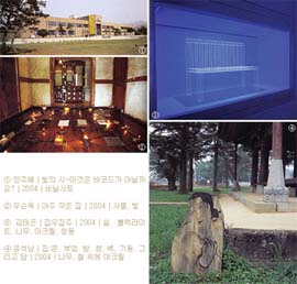 마을의 중앙에는 예전의 작은 초등학교를 깔끔하게 개수한 영암도기쎈타가 자리를 잡고 있었고, 전시는 과거를 현재와 연결시키는 교량의 역할을 하는 그 도기쎈타와 주변 장소들에서 이루어지고 있었다. 순간 나는 엉뚱한 생각에 빠져들었다. 역사문화의 향취가 이렇듯 현재와 깊이 어울려 충만한 곳에서 미술이란 것이 도대체 무엇을 할 수 있을까 하는...