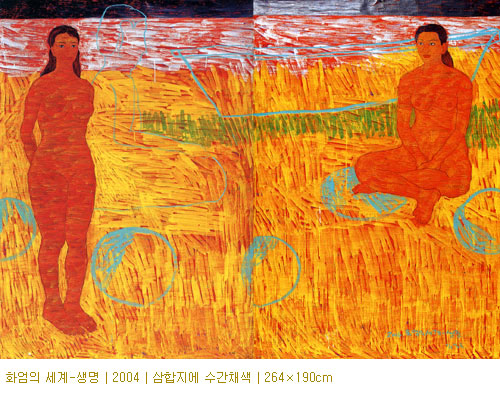 이렇듯 다분히 관능적이지만 사유의 자취를 암시하며 다양한 포즈로 등장하는 여인 누드들은 불교 도상들과 상충, 습합되면서 또다른 의미층을 만들어낸다. 그러나 화면 내의 의미연관은 비단 이미지 운용에 한정된 것만은 아니다. 작가는 다양한 형식 변용과 공간 운용을 통해 자신이 삶과 예술과 종교의 관계성 속에서 터득해 온 일관된 예술의지를 표명하고 있다.