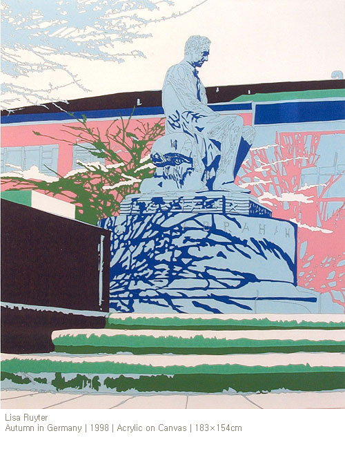 18세기부터의 여러 미술논문은 다음의 신화적 유래에 영향을 받았다: 디부타드(Dibutade)라 불리던 한 코린트(Corinth) 소녀는 그녀의 연인을 늘 곁에 두고 보려는 목적으로 벽에 그의 그림자를 본 따 윤곽을 그렸고 이것을 그림 역사의 시초라 말하기도 한다. 레그널트나(Regnault) 기로데와(Girodet) 같은 신고전주의 화가들의 상징이라 할 수 있는 윤곽선의 사용은 리사 루이터(Lisa Ruyter) 작품 구성요소의 기준이 된다. 불안정하고 양식적인 색다른 형태의 경계선들이 그녀의 작품을 배회하고, 그 사이사이를 강렬한 색체로 꽉 채운다. 루이터의 검은 펜자국은 합성적이면서 변형되지 않은 붓의 움직임을 그리고, 색과 모양이 그것을 둘러싼 선과 완전한 관계를 맺고 있다는 시각적 의미를 분석하게 하는 드로잉을 보여준다. (2003)이라는 작품 속에는 흰색, 녹색, 그리고 주황색의 나무들이 푸른 바닥에서 솟아 나와있고, 모서리를 들쭉날쭉하게 찢음으로써 전체 배경을 나누고 있다. 그리고 그녀의 또 다른 작품 (2003)과 (2003)에서는 루이터의 상징인 추상적(비구상적) 색체에 초점을 맞춤으로써 원근을 없애고 밀집된 형체들을 나타낸다. 줄리안 오피의 상징적 언어가 풍경화를 고결하고 본질적으로 만든다면, 루이터의 선은 그 풍경을 한결 거칠게 하는 힘을 갖고 있다. 아브라함 링컨 조각상의 이미지를 딴 작품 (1998)은 굉장히 세밀하게 표현되었고, 그 속의 밀착된 이미지를 제대로 표현하기 위해, 루이터는 붓의 사용을 자제하고 대신 근경까지 자세한 선으로써 날카롭게 표현하였다. 이렇듯 팝아트의 세계에서 단 한번도 깊게 받아들여지지 않았던 자연풍경화는 후기 팝아트를 통해 환영 받기도, 반감을 사기도 했던 것이다.