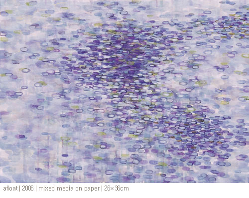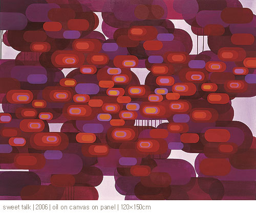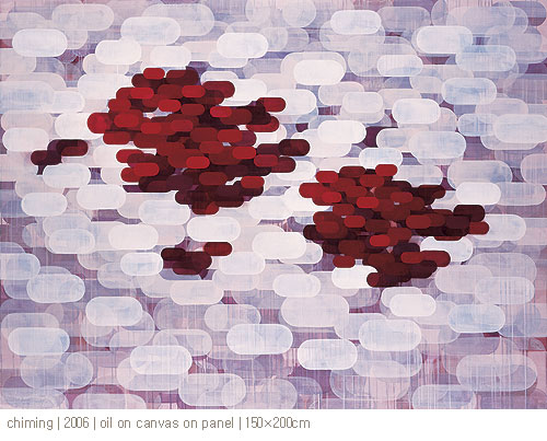 유기체적인 원형과 타원들이 반복되게 겹치면서 회화만의 평평한 깊이와 색의 빛을 만들어내는 화면은 아름답다. 가장 기본적인 도형과 색채로 이루어졌으며 수고로운 손의 노동이 감각적으로 축적된 화면은 미묘한 공간의 깊이와 환영을 보여주는 한편 시간의 지층과 마음의 여러 겹, 생각과 말들의 헤아릴 수 없는 떠돎을 은유한다.