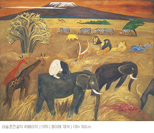 기행을 마치고 온 그는 ‘이번 아프리카 기행은 초현실적이었으며 순례자처럼 기도하는 자세로 스케치를 했다. 맹수를 만났을 때는 미친 사진사처럼 붓을 움직였다’고 했다.