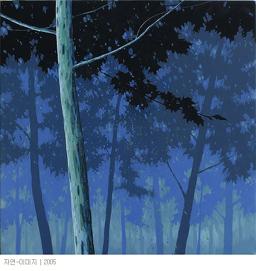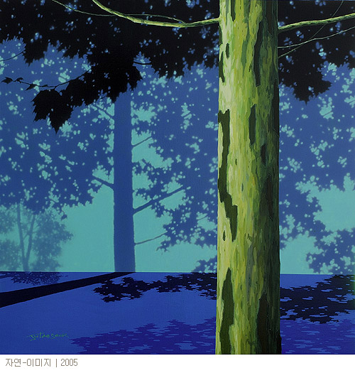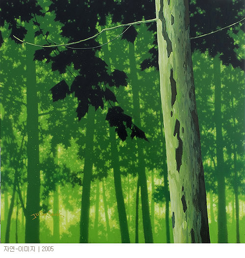 70년대 중반 선보였던 ‘기차 길’ 연작이 대상에 대한 치밀한 묘사가 주 였다면 80년대 말 이후 등장한 ‘자연_이미지’연작은 기계적 재현에서 벗어나 자연주의 미학을 바탕으로한 감성적 작품이다. ‘자연_이미지‘는 전면에 나무와 나뭇잎, 풀잎 형상을 세밀한 부분까지 묘사하고 뒷배경에 해당하는 그림자와 숲은 에어브러쉬를 이용해 서서히 풀어지는 느낌으로 표현한다. 이는 아웃포커싱 기법의 응용으로 가까이 있는 물체는 정교하게, 멀리 있는 풍경은 단순하고 흐릿하게 표현 하는것을 말한다. 사진가들이 자주 사용하는 기법이긴 하지만 작가는 사진처럼 대상을 묘사하되 대담한 색채와 극적인 화면분할의 두 요소를 적절히 강조하여 사진의 그것과 차별한다.