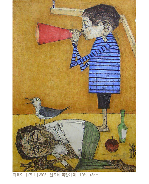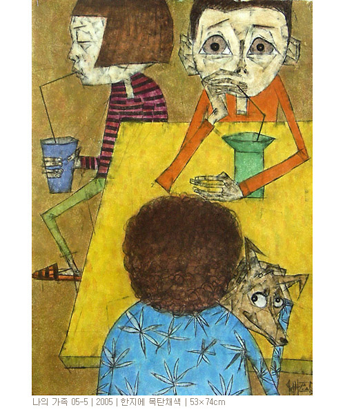 한국화에 서양화 기법을 절묘하게 접합시켜 독특한 자기 세계를 구축한 작가는 현대 가족관계에 있어서의 소외와 소통 부재를 풍자적으로 묘사한 가족내면의 풍경화를 선보임. 최근작 30점과, 일반인들을 위한 소품 20점 전시