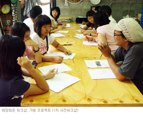 각 존별 워크샵들은 20일~26일 동안 워크샵 기간을 가지고 27일부터는 결과물 전시 및 판매하는 벼룩시장 형태로 탈바꿈된다. 헌 트렁크 가방을 재활용하여 재생 디자인된 여행가방안에, 각 워크샵 결과물들을 전시하고, 이것은 바로 제 2, 3의 순회전시를 위해 팩키지화되어 다음 장소로의 이동을 준비하게 된다.