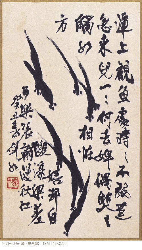 칼처럼 날카롭고, 돌처럼 단단한 가운데 박처럼 둥근 글씨검여 예술세계는 우선 글씨와 그림 모든 장르를 하나로 꿰고 있다는 데에서 남다른 특질이 있다. 서체별로는 해행서ㆍ전예ㆍ대자서 등의 글씨, 사군자ㆍ문인화ㆍ유화 중심의 그림, 갑골문ㆍ종정문ㆍ선조추상 등의 계축묵희(癸丑墨戱), 각종 제발(題跋)작품을 통해 보듯이 모든 서체와 양의 동서를 넘나드는 그림에서 이러한 사실이 증명된다.