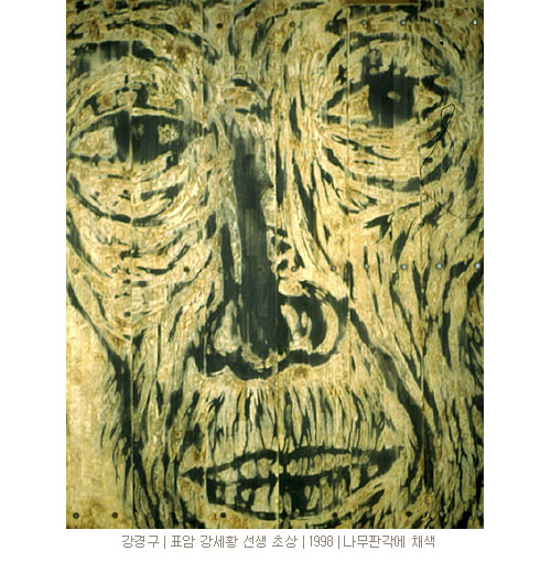 대상의 외면과 행위자의 내면이 손짓과 몸짓을 통해 가시화된다. 목탄, 콩테, 분필 등으로 그리거나(벽화), 칼로 파거나(목판), 손으로 문지르거나(고추장 페인팅), 몸짓으로 휘두르면서(퍼포먼스) 외면과 내면의 접점을 찾아 그 잔영을 보여준다. 이는 예리한 직관으로 형상을 순식간에 떠내는 행위이다.